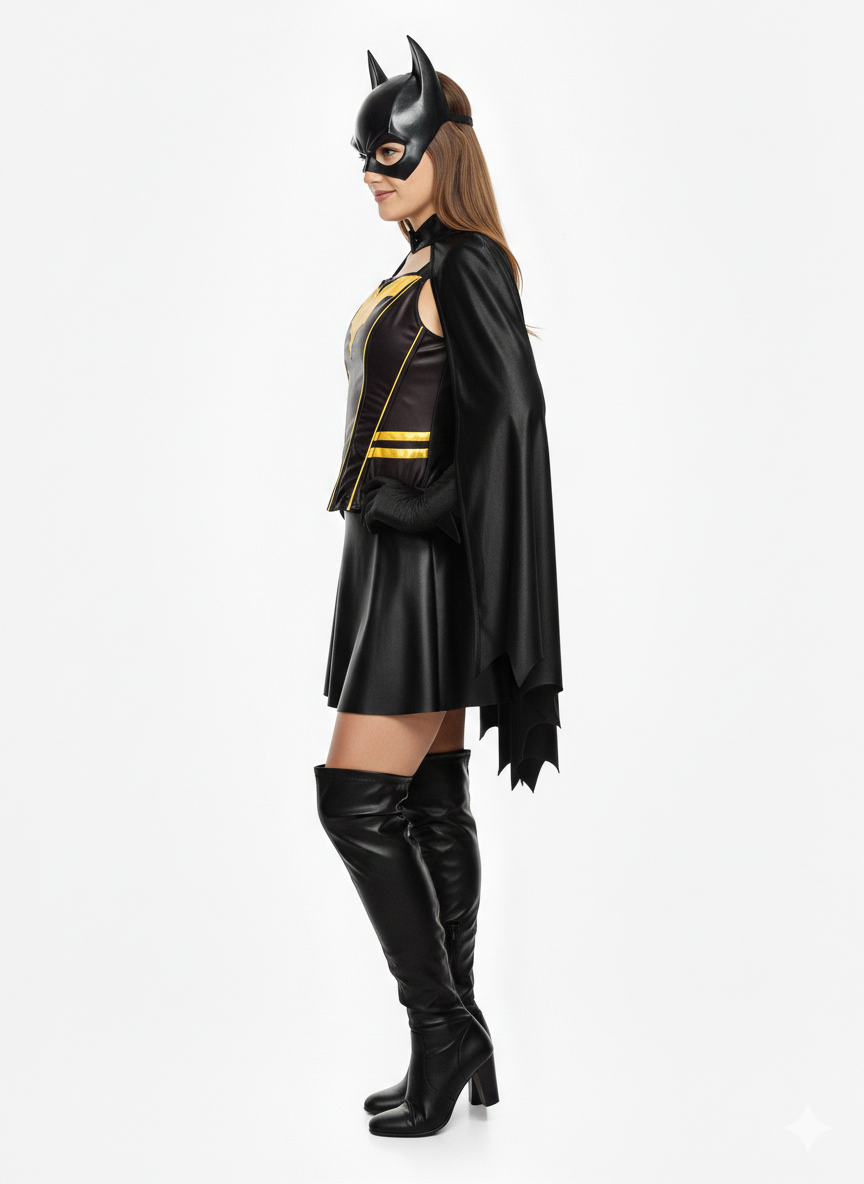 Bruce, você está demitido. Você teve sua chance, Bruce Wayne. Você passou anos tentando controlar o problema do crime em Gotham City, mas parece que novos supervilões estão aparecendo a cada semana e os antigos estão saindo do Arkham Asylum mais rápido do que você pode dizer Batarang. Então, talvez seja hora de você se afastar e deixar outra pessoa assumir o papel de Batman. Afinal, você não parece estar fazendo um grande trabalho mantendo o crime baixo, Bruce. Talvez seja hora de você mostrar ao Cavaleiro das Trevas original como é feito! Sim, está certo. Você tem a determinação e tem alguns movimentos ninja muito doces. Você só precisa de alguns gadgets e, claro, uma fantasia de super-herói. Você pode assumir o manto do Batman usando este traje oficialmente licenciado para mulher. Estoque Batarangues \nSe você deseja assumir o papel de Batgirl, precisará desta fantasia feminina de Batgirl. Você também pode querer estocar Batarangs e também pode querer enfeitar seu carro como o Batmóvel.