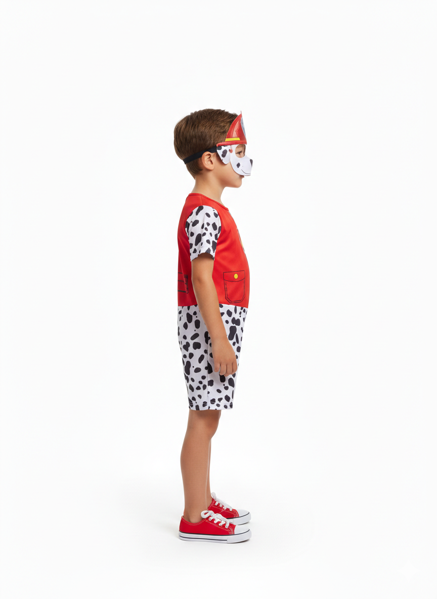 🐾 Fantasia Marshall Patrulha Canina – Edição Conforto Infantil 🚒 Transforme seu pequeno em um verdadeiro herói com a Fantasia do Marshall, o dálmata bombeiro mais amado da Patrulha Canina! Ideal para festas de aniversário, Carnaval, Halloween ou para aquela tarde cheia de aventuras e imaginação em casa. ✨ Por que escolher esta fantasia? Design 2 em 1: Estampa de alta qualidade que simula o colete de bombeiro e as manchinhas de dálmata de forma divertida. Máscara Inclusa: Acompanha máscara temática leve para completar o visual sem incomodar a criança. 🐶 Tecido Leve e Fresco: Perfeita para o clima do Brasil, garantindo que o "bombeiro" possa correr e brincar sem passar calor. ☀️ Fácil de Vestir: Modelo estilo macaquinho/conjunto curto que oferece total liberdade de movimento. 📐 Detalhes do Produto: Personagem: Marshall (Paw Patrol) Cor: Vermelho vibrante e estampa Dálmata (Branco e Preto) Estilo: Curto (Manga curta e shorts) Material: Tecido hipoalergênico e respirável